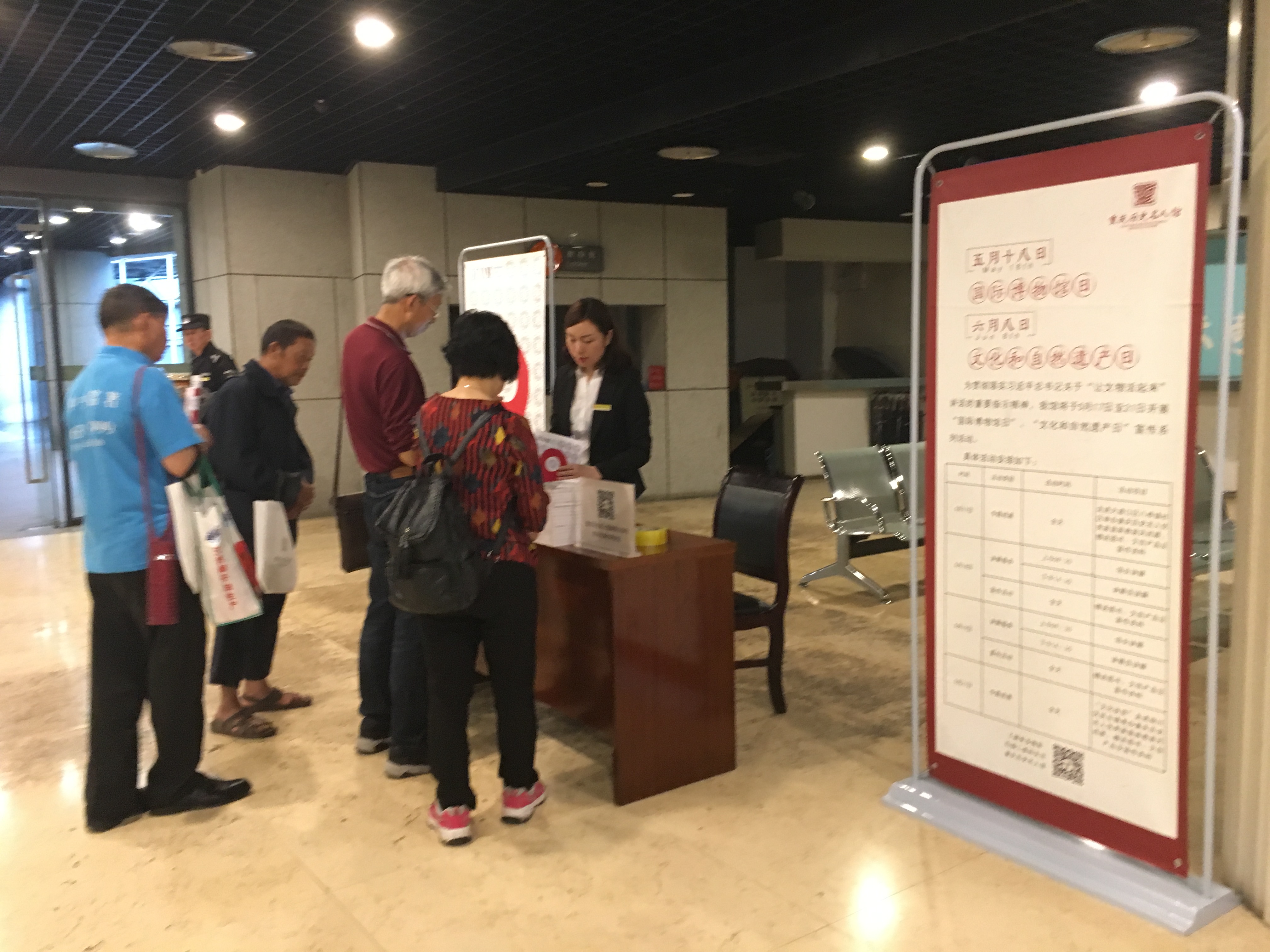 工作人员发送文化宣传资料和文创礼品